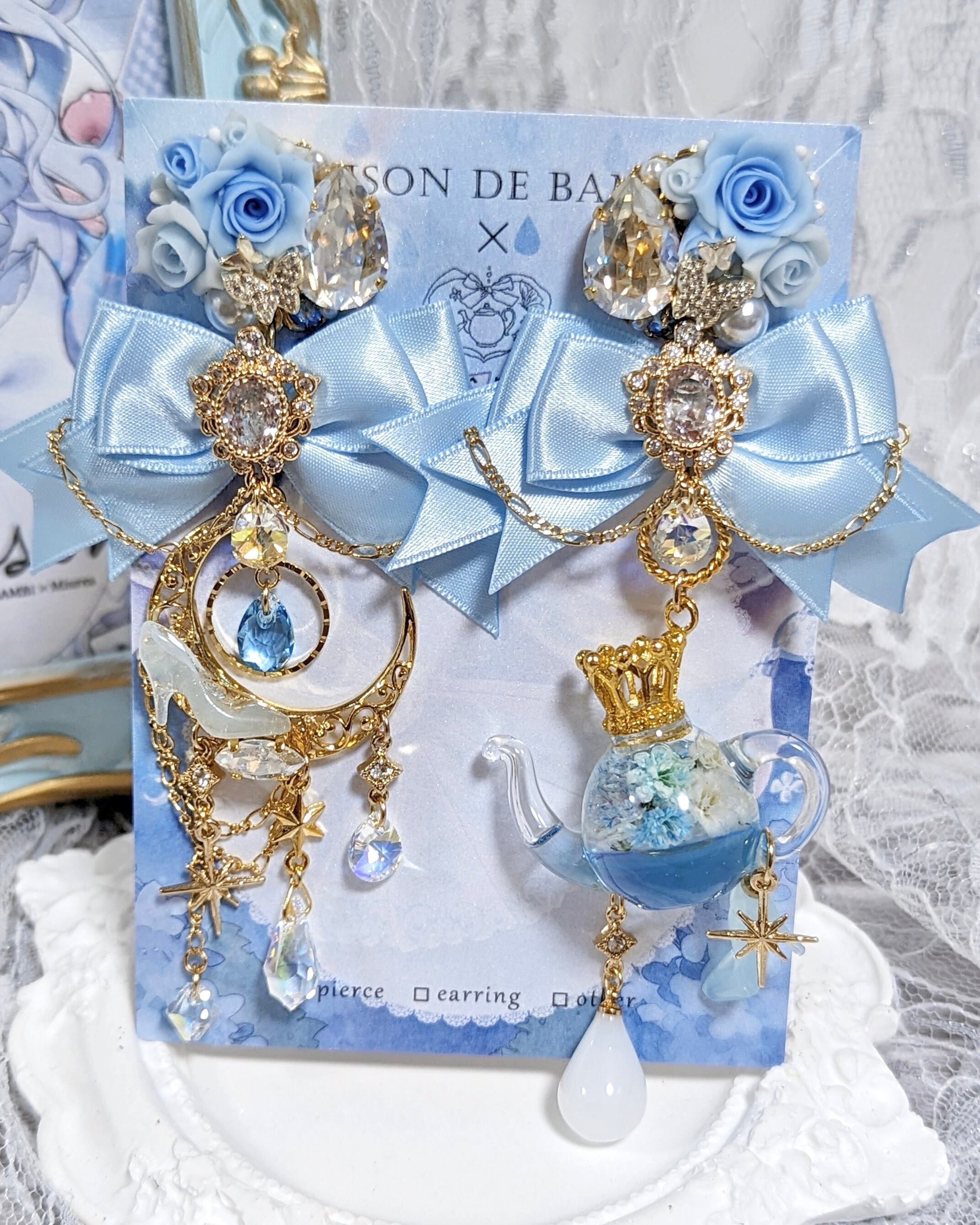 【オンラインver.デザイン】午前0時の涙<シンデレラモチーフ ゴールド>(イヤリング・ピアス可)